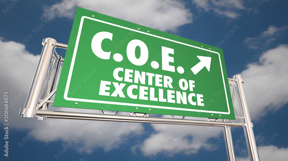 Coe Road Sign Center Of Excellence 3d Render Illustration Stock Foto Adobe Stock